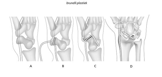 In uw pols is (waarschijnlijk) een bandje gescheurd. Uw pols bestaat uit zeven botjes, die met elkaar verbonden zijn met bandjes, ook wel ligamenten genoemd. Door deze bandjes kunnen de botjes als één geheel bewegen. In uw pols is (waarschijnlijk) een bandje gescheurd (zie tekening A en B). Hierdoor is er speling ontstaan tussen de botjes en bewegen deze niet als één geheel. Ze gaan dan wrikken, waardoor pijn en zwelling optreedt. Op den duur ontstaat zelfs slijtage van de gewrichten (arthrose). Het is daarom belangrijk deze scheur te repareren. Wanneer hechten niet meer mogelijk is moet een hersteloperatie ofwel reconstructie verricht worden. Deze reconstructie heet 3 LT procedure.