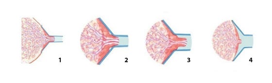 - Borstschild te klein: tepel kan niet vrij in de tunnel bewegen