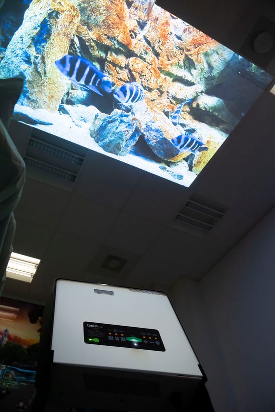 In een van de kamers geeft dit apparaat mooie bewegende beelden op de wand.