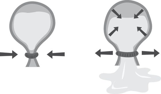 Om te begrijpen hoe een blaas werkt, kun je een ballon gebruiken. Die lijkt namelijk op een blaas. Als je de ballon op zijn kop houdt, met het tuitje naar beneden, lijkt het net een echte blaas. Als je er een beetje water in doet, kun je het plassen nadoen.