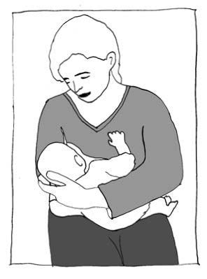 - Uw baby ligt helemaal naar u toe, dus met de buik tegen u aan.