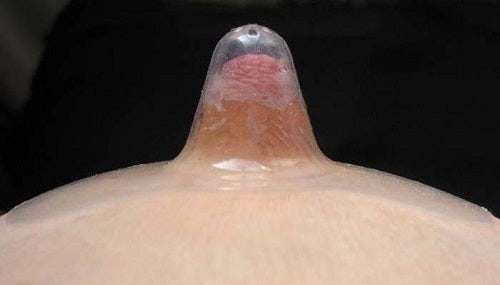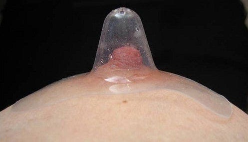 Borstvoeding geven met een tepelhoedje uitklapper, klik om te openen