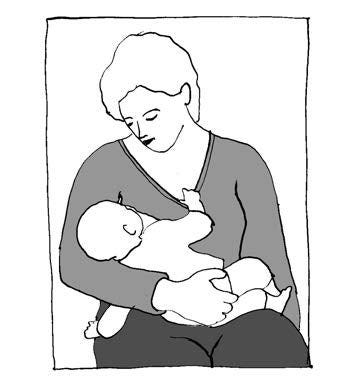 - Leg de baby zo bij de borst dat hij goed bij de tepel kan. (neusje tegenover de tepel)