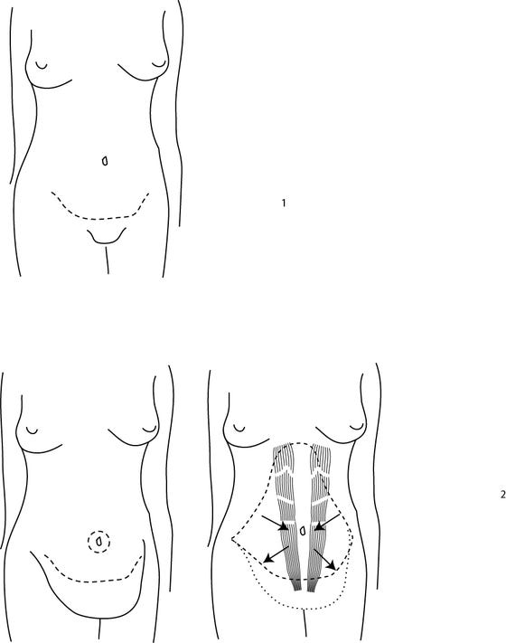 Een operatieve correctie van een slappe buikwand houdt het volgende in: wegnemen van overtollige huid en onderhuids vet, en zo nodig herstel van de stevigheid van de buikwand. De plastisch chirurg probeert zo te werken dat de littekens later zo min mogelijk opvallen. Als het kan wordt alleen een horizontale snede gemaakt, zo laag mogelijk op de onderbuik, zodat het litteken nadien onder de rand van de onderbroek valt (zie tekening 1).