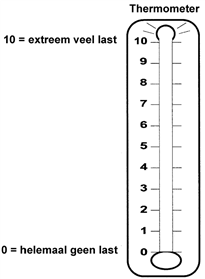 - Een thermometer waarop u de ernst van de problemen kan aangeven op een schaal van 0 tot 10 (0 = helemaal geen last, 10 = extreem veel last)