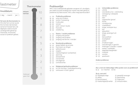 De Lastmeter is een landelijk ontwikkeld instrument om inzicht te krijgen in de behoefte aan psychosociale en/of andere specifieke zorg (bijvoorbeeld van een psycholoog, fysiotherapeut of maatschappelijk werker) bij mensen met kanker.