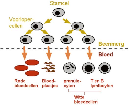 Below is a simple diagram of blood production: from stem cell to mature cell.