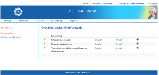 Als u bent ingelogd klikt u op de actielijst en kiest u voor kinderurologie. U ziet dan 3 actielijsten die u dient in te vullen.