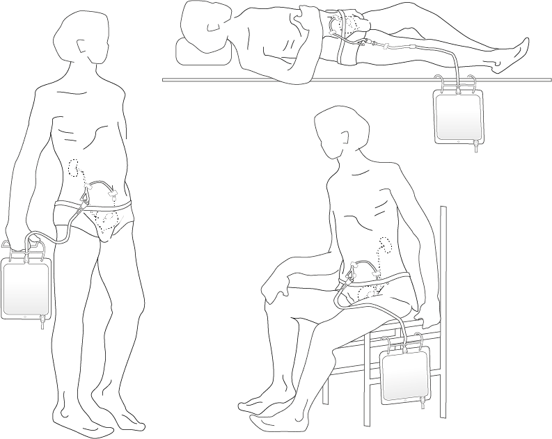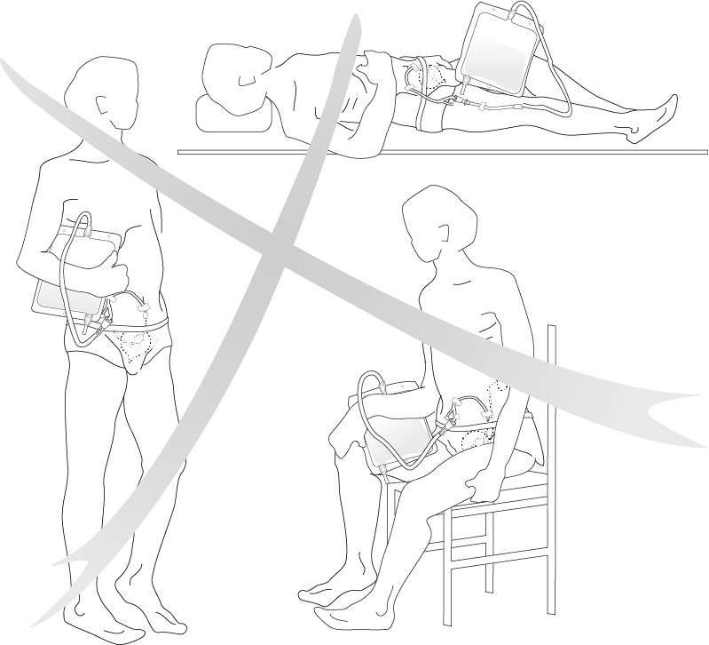 - De urine-opvangzak moet altijd lager hangen dan uw blaas, omdat anders de urine niet kan aflopen (tekening 2a en 2b ).