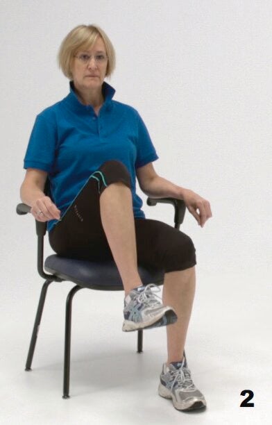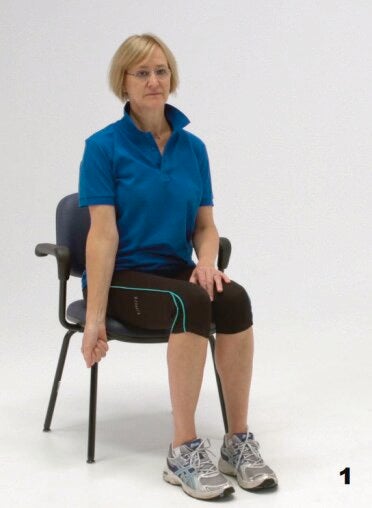 - Ga rechtop zitten in een stoel en strek beide benen.