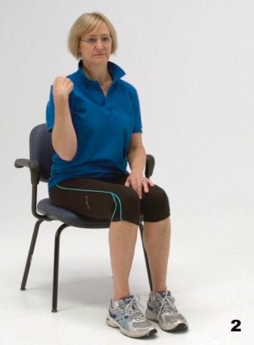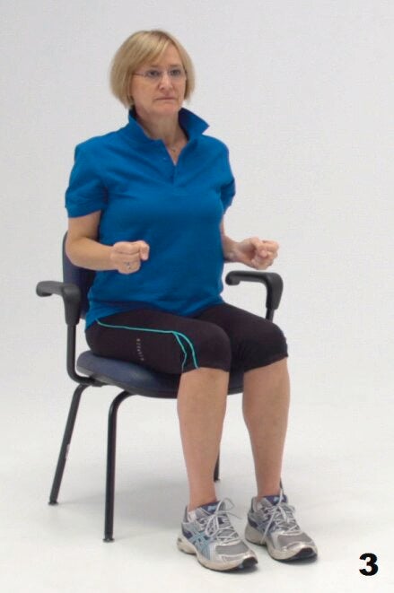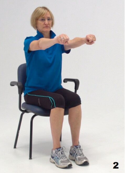 - Bal uw vuisten en strek uw armen voorwaarts.