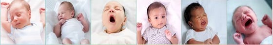 Afbeelding: Rustige slaap - Actieve slaap -Tussen waken en slapen - Wakker - Actief wakker/protesteren - Overstuur/Huilen