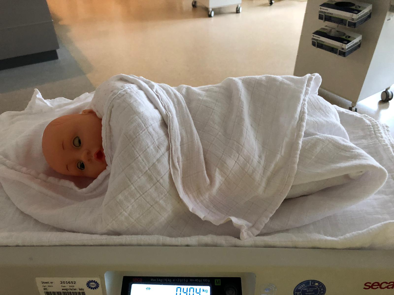 Weeg uw kind ingebakerd op de weegschaal. De hydrofiele doek kunt u voor of na het wegen, wegen om het gewicht te bepalen. Weeg bij voorkeur voor het buidelen of bij het wisselen van kleding.