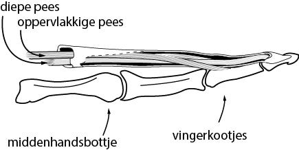 In elke vinger lopen aan de palmzijde van de hand twee (buig)pezen. We spreken bij een vinger van een zogenaamde oppervlakkige en van een diepe buigpees, omdat de oppervlakkige pees over de diepe pees loopt (zie afbeelding).