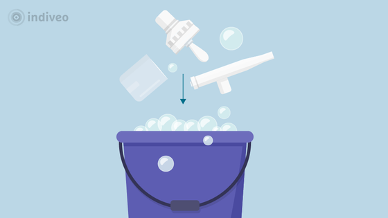 Maak de onderdelen schoon in een handwarm sopje.