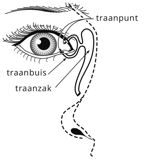 In de binnenste ooghoek aan de neuskant bevindt zich in het boven- en onderooglid een buisje. Het begin van dit buisje wordt het ‘traanpuntje’ genoemd. De beide traanbuisjes komen samen in de traanzak. Vanuit de traanzak loopt er een kanaal door de neuswand naar de neusholte (zie figuur 1).